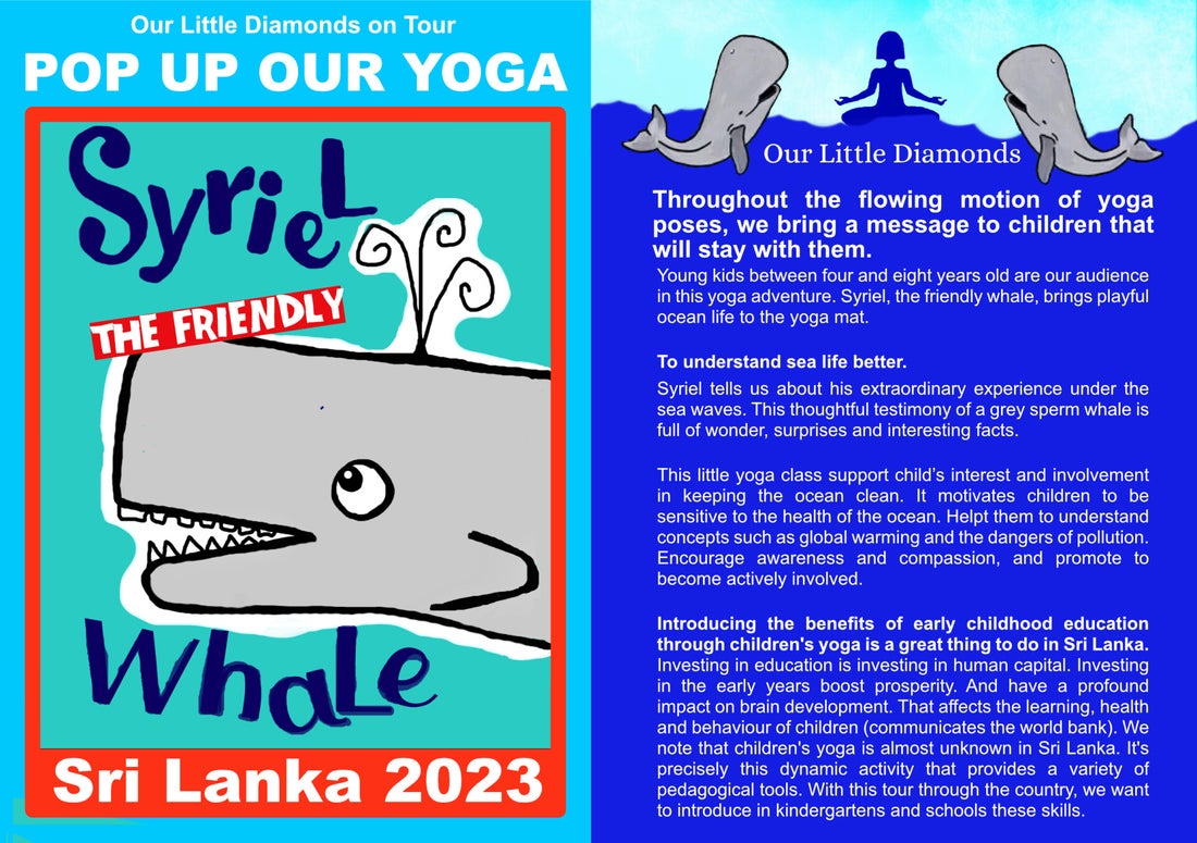 We were excited about our first try-out in Sri Lanka, after a period of lockdown due to the pandemic. We wondered if 'Cyriel, the friendly whale made of papier mâché,' would appeal to the children. After all, the ecological message had to be understood by the young audience.